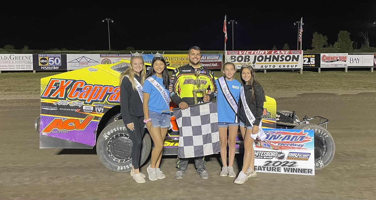 In Whitesboro Plow Shop DIRTcar 358 Modified action RJ Tressider led early but Tyler Meeks had other plans. Meeks would take his new Bicknell car to the lead on lap 4 of the 25-lap event, Tressider, Preston Forbes, Taylor Caprara and Jeff Sykes completed the top five. Once in front, Tyler Meeks was well in control and was pulling away from the field with no problems, but Taylor Caparara was on the charge as he slowly started to move to the front. Caprara would get by Forbes for third and then run down Tressider for the runner up spot, while Meeks continued his dominant run and a possible first win of the season. With 10 laps to go Meeks was closing in on lapped traffic as Caprara would get by Tressider for the second spot. With five laps left, the big lead Meeks had was gone and Caprara was right there to challenge. Coming to the line with two laps left, Taylor Caprara would make a brave move for the lead on the high side off turn four to take the top spot. From there Taylor Caprara would make his dream come true scoring his first career DIRTcar 358 Modified win on home turf. Meeks came across in second over Lance Willix Billy Dunn and Preston Forbes.
