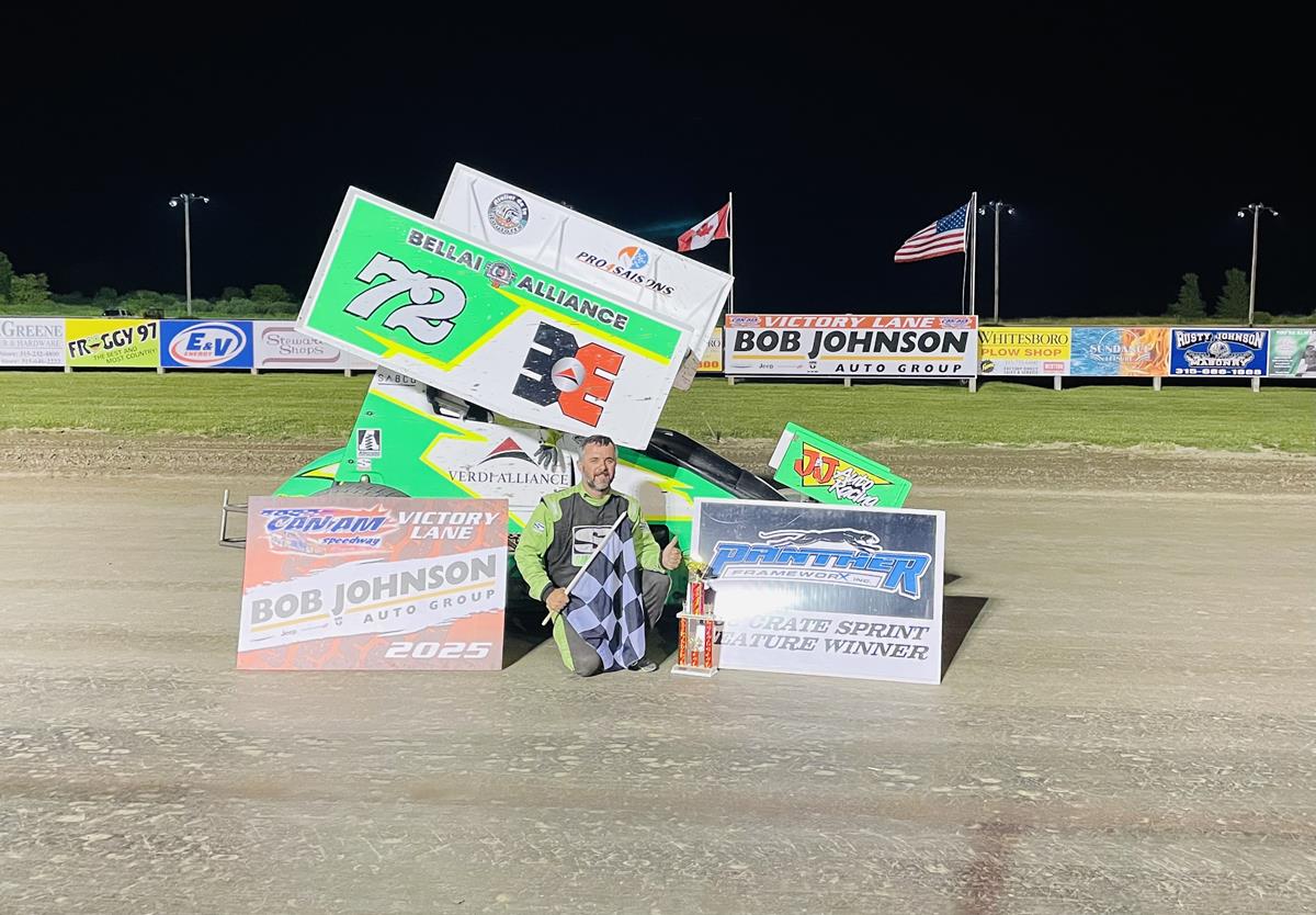Ken Klinkowsky had a dominant car in last weeks 20 Panther Frameworx Crate Sprint Car feature only to have the win slip away. This week was much the same as he led the early laps over Tucker Donath and Bruno Richard. Richard had a fast car and was able to get by Donath for second but had over a straight away to make up as the laps clicked off. With 5 to go Klinkowsky still led but traffic and a fast closing Bruno Richard were going to make it tough on the veteran. On lap 18 off turn two Richard closed in and Klinkowsky made one small mistake off the corner, allowing Richard to get by down the back stretch. From there the Gatineau Quebec native would march on to his second win of the year and his 72 career win overall. Klinkowsky settled for second with Tucker Donath, Nick Webb and 3-time defending track champion Josh Verne Jr. 5th.